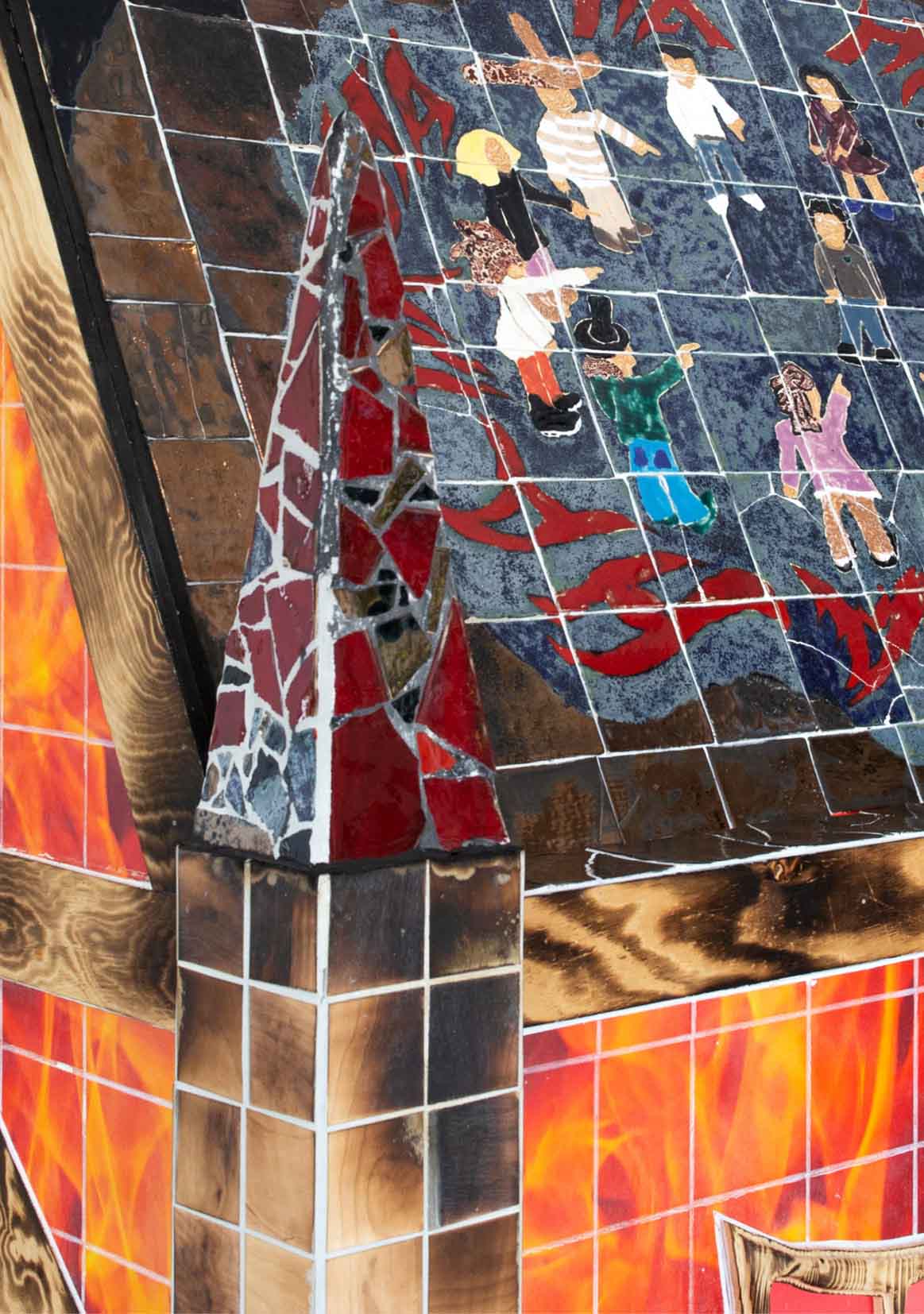 Details of the roof, glazed ceramics tiles, 165x100cm.